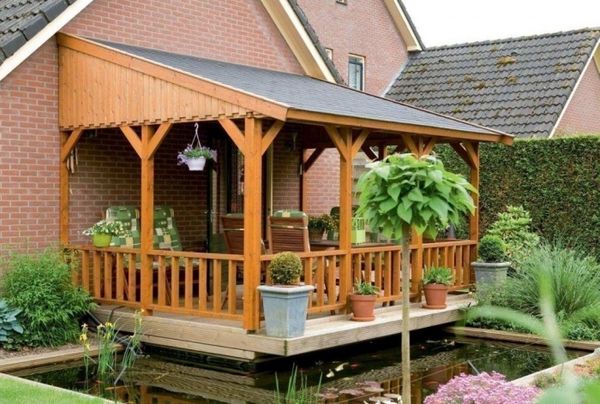 La charpente de la véranda est constituée de poutres en bois. Il est important que le toit soit en pente, afin que l'eau et la neige ne s'y accumulent pas. Tout matériau peut être mis sur le cadre : polycarbonate, verre, carton ondulé. Le choix dépend des souhaits du propriétaire.