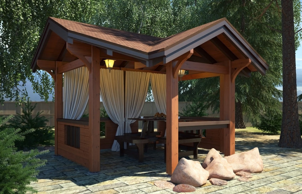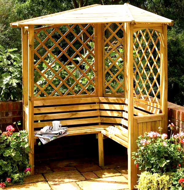 Gazebo d'angle: comment aménager un endroit confortable pour se détendre de ses propres mains
