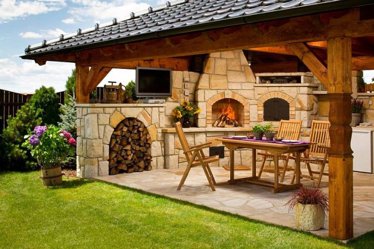 Un espace barbecue confortable et bien équipé deviendra le principal lieu de repos sur le territoire de la parcelle personnelle. Puisque c'est ici que vous pouvez organiser des goûters en famille, des soirées romantiques et des réunions amusantes avec la famille et les amis.