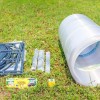 Pour assurer une meilleure protection des plantes en hiver, il est nécessaire de bien assembler la serre, car le moindre oubli peut entraîner une mauvaise résistance au gel ou une mauvaise stabilité du cadre. L'ensemble du cadre de la serre est complètement démonté. Le kit comprend des éléments arqués et droits qui sont fixés avec des boulons solides. D'ailleurs, grâce à ce format de cadre, la serre peut facilement tenir dans le coffre d'une voiture, bien sûr démontée. Il est également assez léger pour une serre de cette taille.