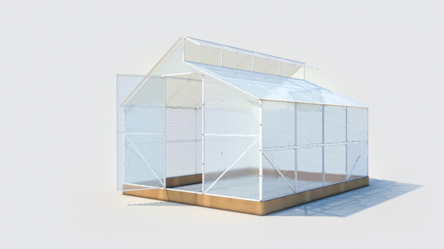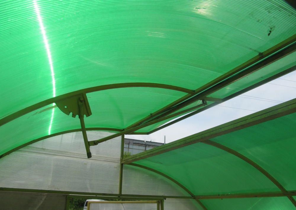 La traverse (fenêtre) est en polyéthylène, fixée sur des lattes de bois, le degré de son ouverture peut être réglé indépendamment. De plus, il s'ouvre sur l'intérieur du bâtiment, ce qui régule l'apport d'air frais.