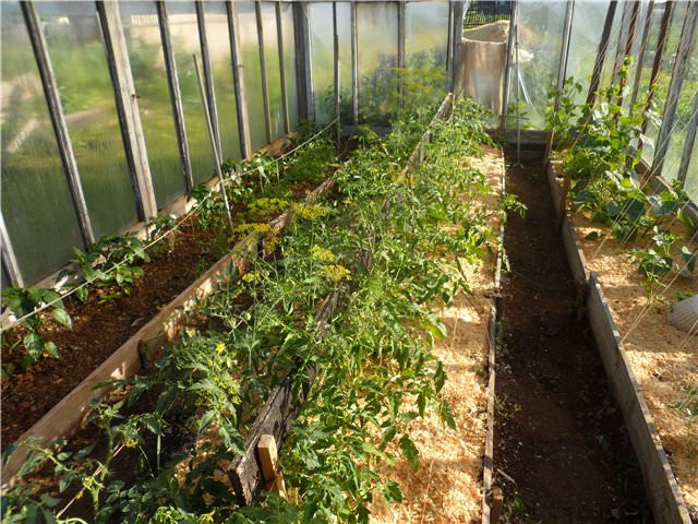 La surface de la serre est de 12x6x2,7 m, c'est-à-dire assez grande. C'est ce qui joue un rôle décisif dans le maintien d'une température stable à l'intérieur de la pièce, même avec une forte baisse de celle-ci à l'extérieur.