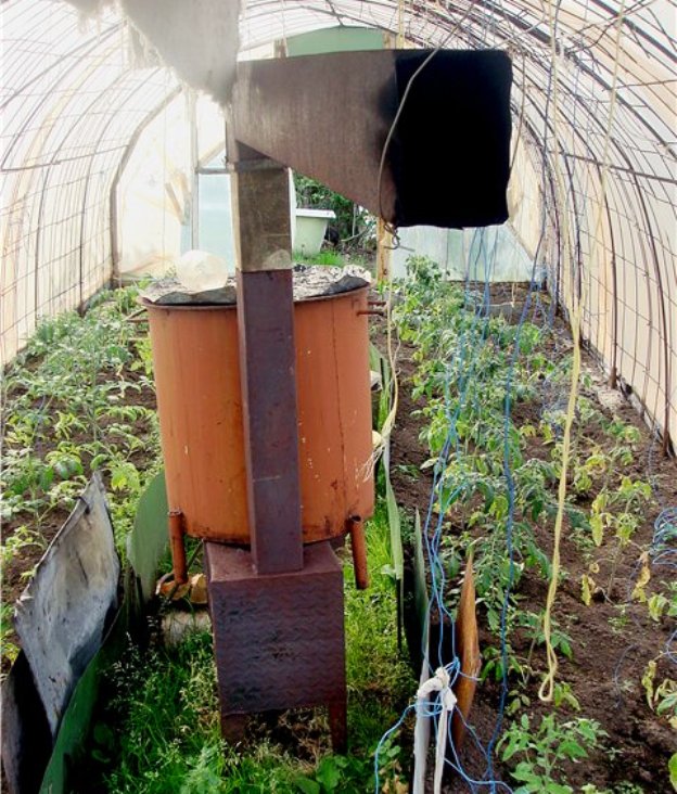 Le plus simple est le chauffage biologique ou les lits dits chauds. Dans ce cas, l'énergie thermique est libérée à la suite de la décomposition de la matière organique à la suite de l'activité vitale des micro-organismes. Le biocarburant est du fumier de cheval ou du compost à base de celui-ci, qui est placé sous la couche de sol. La chaleur de la couche organique réchauffe le système racinaire de la plante