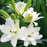 - Casablanca Hybride populaire. Une tige haute de 1,2 m supporte des bourgeons massifs de 25 cm de diamètre.