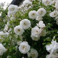 Rosier grimpant et refleurissant, également connu sous le nom d'Antique. Une fleur inhabituelle aux pétales blancs comme neige, diluée avec une délicate nuance de framboise sur les bords. L'arbuste mesure près de trois mètres de haut et deux mètres de large. Les bourgeons éponge, de 12 à 13 cm de diamètre, sont répartis en 3 à 5 morceaux sur une tige. Floraison de la fin du printemps à l'automne.