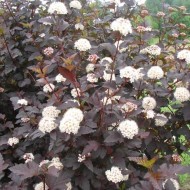 Arbuste tentaculaire aux branches pendantes mesurant 3x3 m.Les pousses sombres flexibles sont densément couvertes de feuilles trilobées ou à cinq lobes de couleur violet-bordeaux. Il fleurit au début de l'été, jetant des inflorescences de bougies blanc crème.