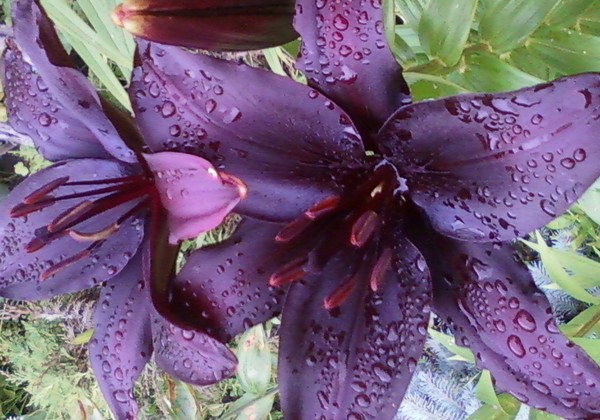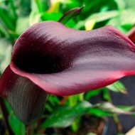 Elégants grands lys calla d'une teinte marron inhabituelle avec une teinte violette. La hauteur d'une plante adulte n'est que de 0,6 m.Les tiges sont dressées, du même ton sombre que les inflorescences. Les feuilles sont vertes, avec des taches claires et une fine bordure rouge foncé. Black Star fleurit de juin à août.