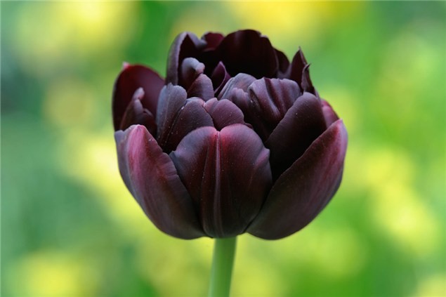 Fleur double luxueuse qui fleurit de juin à la fin de l'automne. La longueur des fines tiges dressées est de 0,8 à 0,9 m.Les inflorescences sont denses, denses, d'environ 12 cm.La couleur est d'un noir profond avec une teinte bordeaux ou violette.