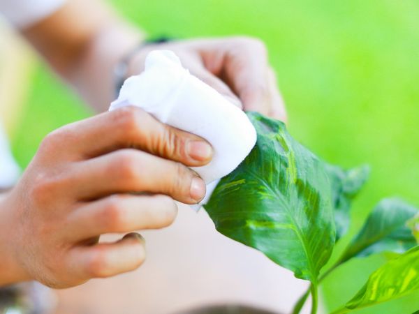 Vous pouvez également essuyer périodiquement vos plantes avec un chiffon ou une éponge humide. Essuyez délicatement chaque feuille sans appuyer sur l'éponge. Il est également déconseillé de frotter les feuilles avec une grande force, car cela peut leur causer des dommages mécaniques. Essuyez le feuillage de l'extérieur et de l'intérieur en plaçant délicatement la plaque à feuilles sur la paume de votre main. C'est une bonne alternative à la douche et vous aidera à vous débarrasser de la saleté sur vos fleurs.