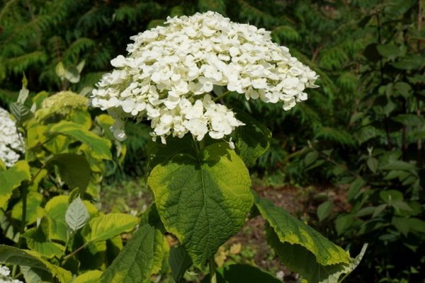 La variété Strong fleurit avec les plus grandes inflorescences blanches comme neige, couvrant densément tout le buisson. Elle préfère les sols acides et a besoin d'une alimentation constante. Les parapluies fleuris sont parfaits pour la coupe et sont souvent utilisés dans les bouquets de mariage.