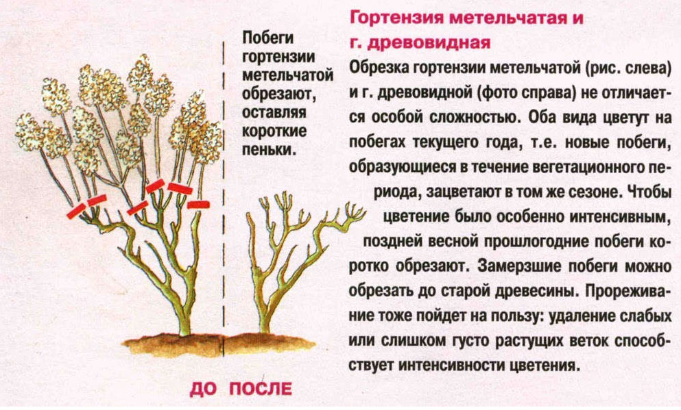 L'hortensia panicule nécessite une taille annuelle. En automne, les jardiniers enlèvent les broussailles fanées et les pousses blessées par les intempéries.