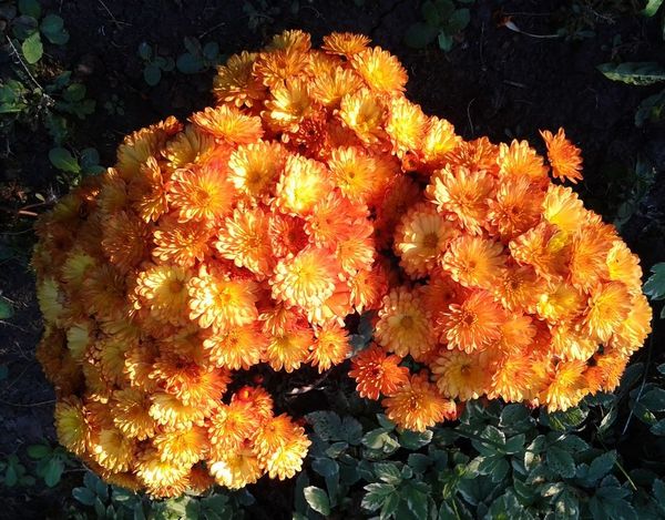 Le chrysanthème n'atteint sa taille maximale qu'à la fin de l'été, avant de fleurir. Pour éviter que la fleur ne perde son aspect sphérique, il est recommandé de la replanter tous les 3 ans.