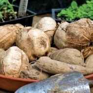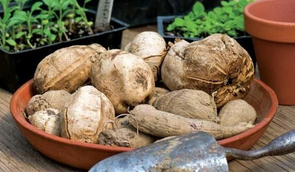 - La terre du jardin. Les tubercules sont placés dans une boîte et saupoudrés d'une petite couche de sable, de tourbe ou de terre humide. L'épaisseur de la couche ne doit pas dépasser 10 cm, ce qui peut être appelé hivernage dans son habitat naturel. De plus, grâce à la fine couche de couverture, les racines reçoivent une quantité suffisante d'oxygène.