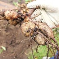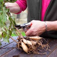 - Les racines sont soigneusement examinées pour la pourriture et les dommages. Les racines malades sont séparées et jetées. Les racines très longues sont légèrement raccourcies. Cette procédure rendra les tubercules compacts, ce qui les rendra plus faciles à stocker.