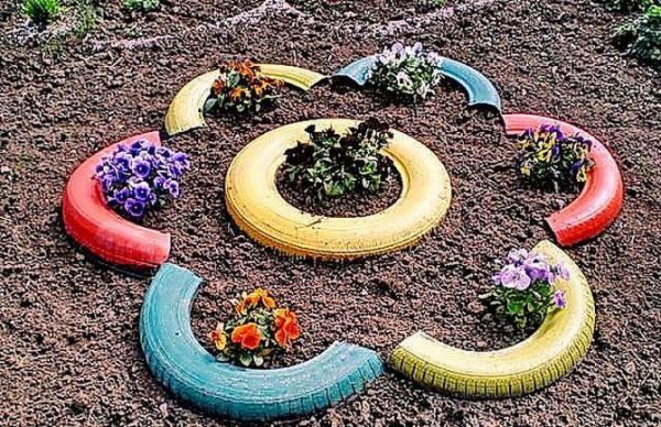 - le pneu doit être peint des deux côtés: à l'extérieur et à l'intérieur - le sol a tendance à s'affaisser et, avec le temps, la beauté du jardin de fleurs peut être gâchée par la saillie de la partie non peinte du pneu.