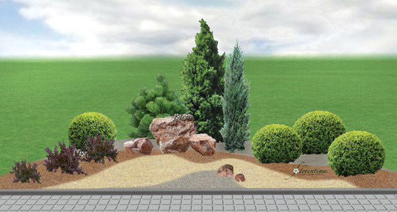 Une fois le sol du parterre de fleurs préparé, vous pouvez commencer à décorer la composition de conifères. Ici, il est important de transférer le plan schématique du parterre de fleurs aussi précisément que possible sur un terrain réel.