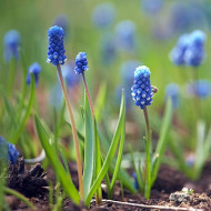 Ces bulbes sont également connus sous le nom de jacinthe de souris ou d'oignons vipères. Une plante basse (jusqu'à 10 cm) fleurit en avril et aime les endroits bien éclairés. Les inflorescences des muscaris ont une forme conique, elles sont blanches avec une teinte bleuâtre ou rose pâle.