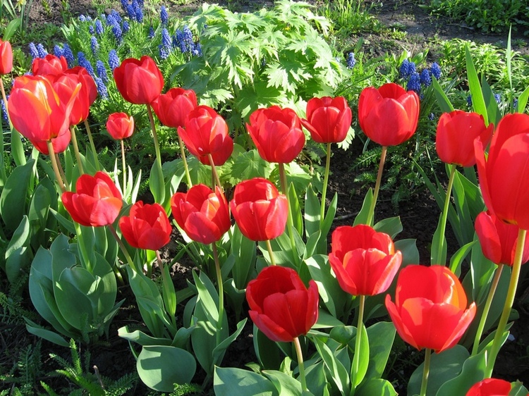 Les fleurs de printemps fleurissent plus près de mai. Leur hauteur peut aller de 10 à 50 cm, la couleur dépend de la variété. On trouve souvent des tulipes blanches comme neige, jaune vif, écarlates, corail, lilas ou roses avec diverses nuances et taches. La plante préfère les zones ensoleillées du jardin.