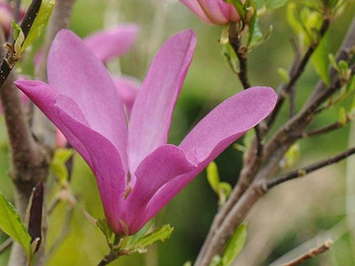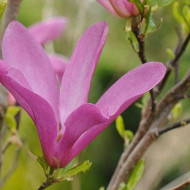 Magnolia compact, pas trop gros, jusqu'à 3 m de haut et environ un mètre et demi de diamètre. Les bourgeons s'ouvrent en premier, précédant l'apparition du feuillage. Les fleurs sont en forme de tulipe, peintes dans la couleur du vin de Bourgogne avec une teinte violette, ce qui donne aux pétales une texture veloutée.