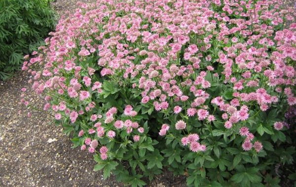 - Astrantie. Les espèces à faible croissance de cette culture ne dépassent pas 40 cm.Astrantia fleurit tout l'été et si l'automne est chaud, la période de floraison est prolongée jusqu'en octobre. Les pédoncules sont grands, allant du blanc au rouge et au bordeaux (selon la variété). Préfère les endroits ensoleillés, mais peut pousser n'importe où : à l'ombre d'un jardin, sur des pierres, dans un sol sablonneux.