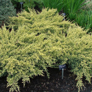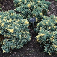 Juniperus squamata Floreant est issu de Blue Star. Genévrier à croissance basse atteignant un mètre de haut et de 1,5 à 2 m de diamètre.Il se caractérise par une couleur panachée - des taches jaune clair sont dispersées au hasard le long des aiguilles gris-vert. La variété pousse sur n'importe quel sol et ne nécessite pas d'abri supplémentaire pour l'hiver.