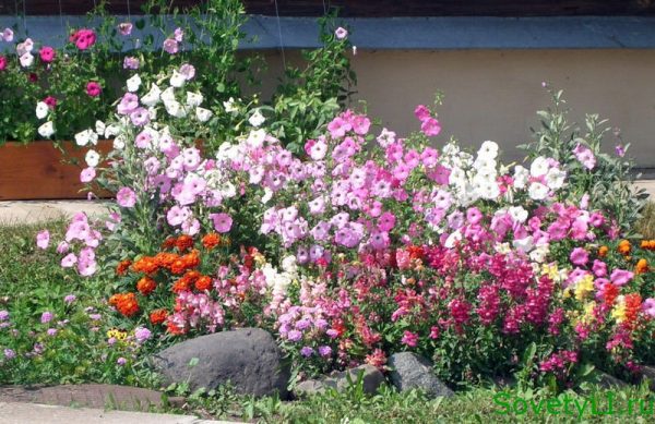 Au début de l'été, fleurissent : zinnia, soucis, bleuets, lobelia. Jusqu'à la fin de l'automne, ils se délectent de la floraison : calendula, aster, lavatera, muflier. N'oubliez pas que les fleurs diffèrent non seulement par la forme et la couleur des pétales, mais aussi par la hauteur. Disposez des fleurs de différentes hauteurs pour de belles combinaisons.