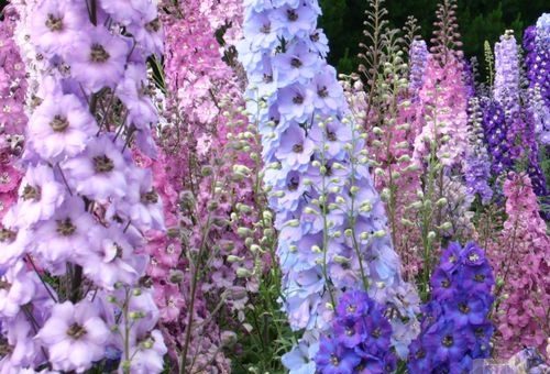 Delphinium est sans prétention au site d'atterrissage. Ses graines germent bien, vous pouvez donc la planter directement dans votre jardin. Le delphinium se marie bien avec la mauve éponge, l'huile de ricin.