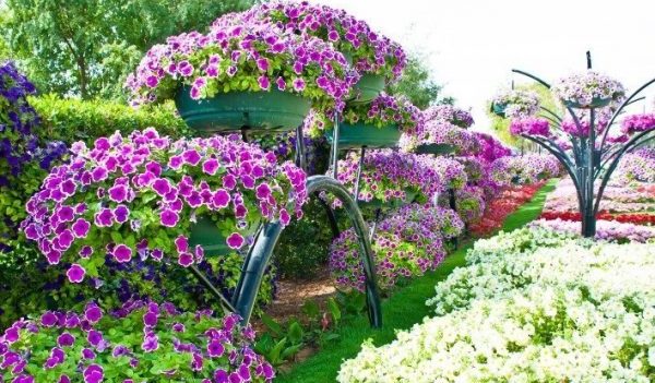 Pétunia est un habitué des compositions suspendues. En raison du fait que le pétunia fleurit tout l'été et la majeure partie de l'automne, il est utilisé comme élément décoratif non seulement dans le jardin, mais également en milieu urbain. Les buissons à croissance lente et étalés ont fière allure dans des pots suspendus. Quels que soient les besoins du jardinier, il existe toujours une dizaine de variétés qui satisferont ses besoins. L'essentiel est d'acheter des graines auprès de producteurs de confiance et de laisser libre cours à votre imagination.