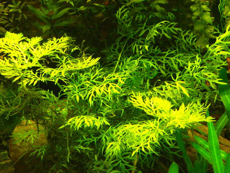 Un autre représentant de la flore aquatique qui pousse dans les étangs ou les aquariums. Contrairement à la variété précédente, elle a de petites pousses sculptées et très ramifiées de couleur vert foncé. Le système racinaire est bien développé, mais plutôt fragile. La hauteur d'une plante adulte atteint 0,5-0,6 m.