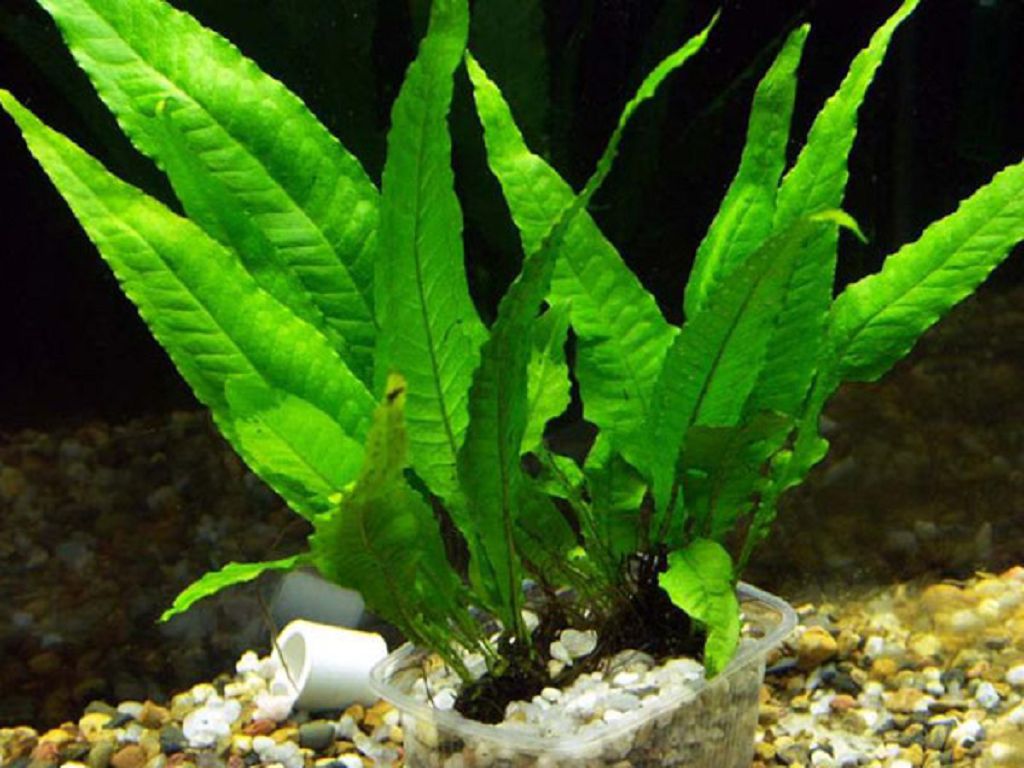 Une variété de culture d'aquarium, qui atteint 0,2-0,3 m. Elle a une longue racine à partir de laquelle poussent des feuilles lancéolées de couleur herbacée vert vif avec des pointes pointues. En raison de l'apparition de frondes, la fougère a été nommée ptérygoïde. La plante aime un environnement aquatique chaud (pas moins de +24 ° C) avec un niveau d'acidité neutre, un bon éclairage et une alimentation régulière.