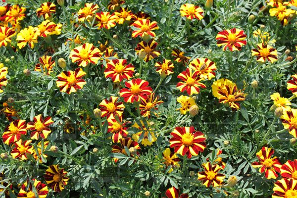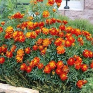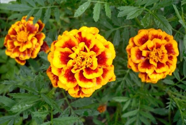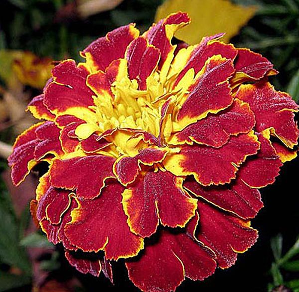 - Carmen. Habituellement, il ne dépasse pas 30 cm, mais on trouve parfois des spécimens plus gros. Cette variété tolère facilement le repiquage, c'est pourquoi on la trouve souvent en vente comme plante à fleurs. Les soucis au milieu sont jaunes et vers les bords, la couleur se transforme doucement en bordeaux.