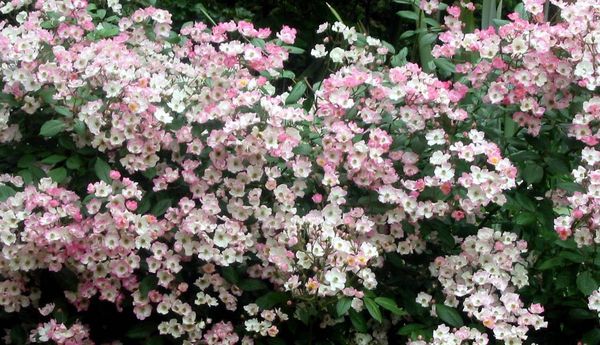 Si vous plantez cette plante dans le sol, elle prendra rapidement racine. Ses antennes poussent rapidement et atteignent une hauteur d'un demi-mètre. Les fleurs de cette rose sont blanches et roses. La période de floraison active dure du début de l'été aux premiers froids.
