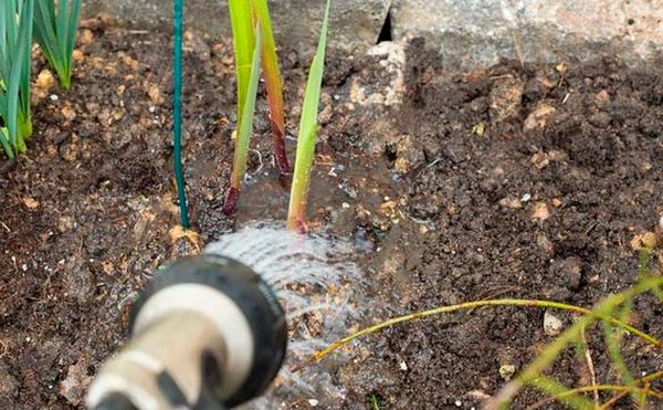 Un arrosage abondant est nécessaire pour le glaïeul à un moment où la masse verte se développe activement et où les bourgeons se forment. S'il y a peu d'humidité, cela est lourd de faiblesse des racines et de courbure de la partie aérienne de la fleur. L'arrosage doit être effectué avec de l'eau tiède à raison de 10 à 15 litres pour chaque plante, après la procédure, le désherbage et l'ameublissement de la terre s'ensuivent. Pour une meilleure formation des tubercules en automne, il est recommandé de réduire les arrosages.