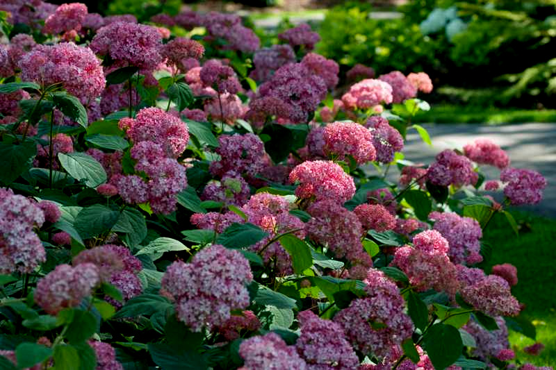 - Sandy frais. La plante mesure 1 m de haut avec de très grandes et lourdes inflorescences de couleur caméléon (du blanc au carmin foncé). L'arbuste fleurit tout l'été.