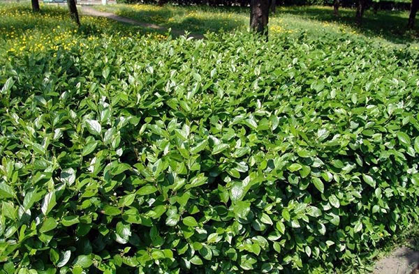 Buisson couvre-sol dont la hauteur ne dépasse pas 50 cm.Pousse rapidement, couvre une superficie de 2–3 m² m. Il est considéré comme à feuilles persistantes, car la chute des feuilles se produit au printemps, lors de la formation de nouvelles feuilles.