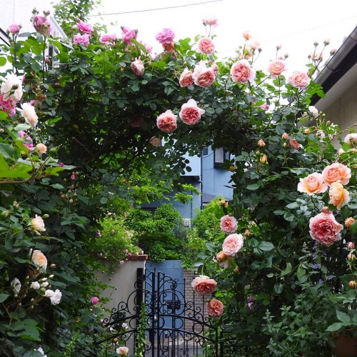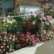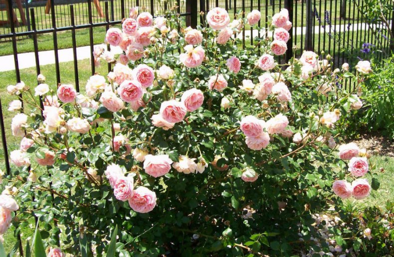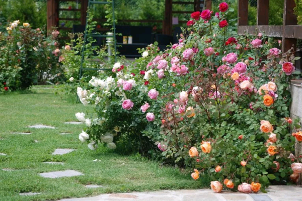 Variantes de l'utilisation de la rose Abraham Derby dans le paysage