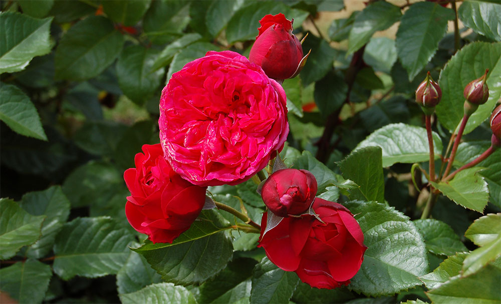 - Piano rouge (Ed). Les pétales sont d'un bordeaux riche, ils ont l'air particulièrement pittoresques. Cette variété est considérée comme l'un des rosiers les plus attrayants.