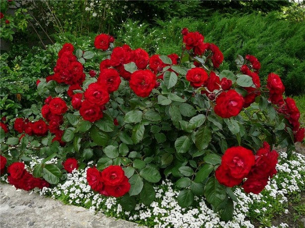 - Les buissons sont de taille moyenne, la hauteur maximale est de 1,2 m. La largeur varie selon la variété, allant de 60 cm à 1 m. La couronne est sphérique.