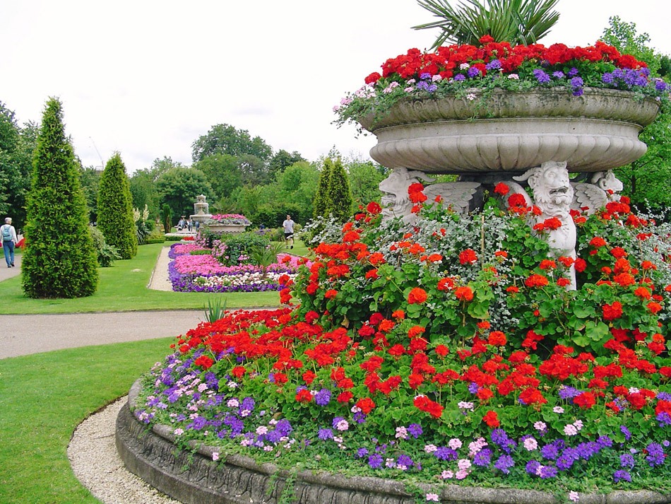 Le ruisseau "correct" est relié par des cascades de fleurs ou leurs chutes d'eau. Cette structure décorative rend le site luxueux et « royal ».