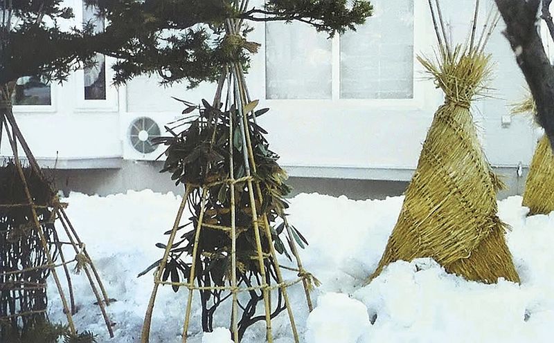 Les plantes jusqu'à 50 cm de hauteur ne peuvent pas être pliées. Un tuyau de matériau de toiture est installé autour d'eux, rempli de feuilles sèches. D'en bas, ils enduisent cette structure de terre et d'en haut, ils la recouvrent de lutrasil.