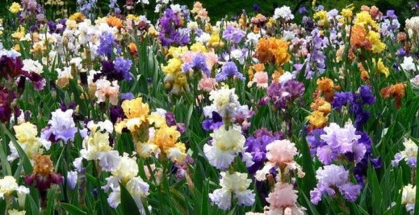 Iris. Les iris à grandes fleurs sont parfaits pour créer un parterre de fleurs monochrome, complété par des céréales décoratives. Pour décorer les parterres de fleurs, des iris d'une ou plusieurs variétés de différentes couleurs sont utilisés. Les iris bleus ou blancs et le pavot oriental écarlate brillant contrastent magnifiquement. La même nuance jaune d'iris et de lys, associée à de l'encens, est spectaculaire.