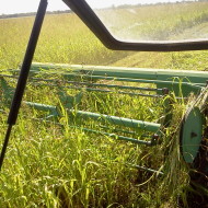 Récolté par fauchage avec des en-têtes en rouleaux, puis laissés à sécher et battus avec des moissonneuses-batteuses.