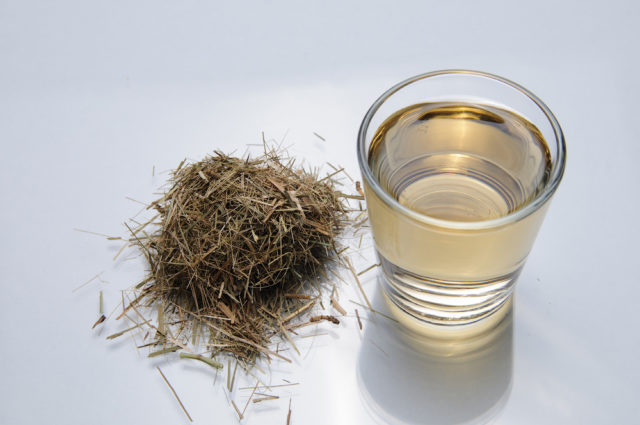 - 1 cuillère à soupe de matières premières est broyée, puis versée avec un verre d'eau bouillante;