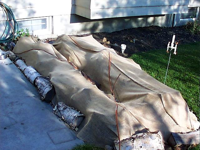 Un moyen simple de cacher les fleurs est de plier les cils des fleurs au sol, de les attacher avec de la ficelle et de poser une couche de branches d'épinette sur le dessus. L'isolation est placée sur cette "structure".