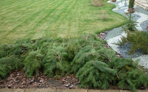 - Répartition des branches le long du cercle proche du tronc. Cela offre une protection fiable du système racinaire contre le gel.