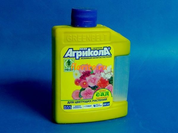 Les cultures à fleurs de jardin, d'intérieur et de balcon peuvent être fertilisées avec Agricola 7. Il favorise la croissance des bourgeons, allonge la période de floraison. Bien qu'il n'y ait aucun mal si les plantes à fleurs ornementales sont arrosées ou aspergées de Vegeta, cela donnera également un bon résultat. Il existe une composition spéciale pour les roses. Il peut être utilisé pour les fleurs de jardin et d'intérieur. Il contient le plus de potassium, ce qui les aidera non seulement à fleurir magnifiquement toute la saison, mais aussi à supporter plus facilement l'hiver.