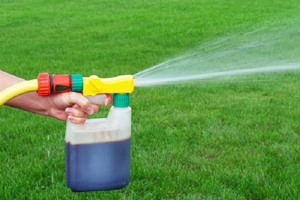 - À l'aide d'un vaporisateur ou d'un arrosoir. Il est pratique d'utiliser ces appareils pour les engrais liquides sous la forme d'une solution concentrée diluée avec de l'eau.En outre, en trempant, vous pouvez préparer une vinaigrette supérieure à partir de tourbe, de molène. Lorsque vous travaillez, vous devez respecter les mesures de sécurité : porter des vêtements de protection et des gants en caoutchouc, bien se laver les mains après le travail. Pour une grande pelouse, il est préférable d'acheter un arroseur spécial dans le magasin - cela permettra d'économiser du temps et de l'énergie.