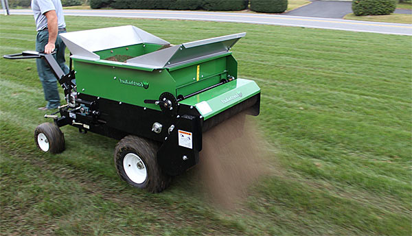 - Méthode mécanique. Dans ce cas, un semoir spécial est utilisé, qui doit être soigneusement déplacé sur la pelouse. Cette méthode permet d'épandre l'engrais plus uniformément. Après avoir appliqué le top dressing, le semoir doit être soigneusement lavé et séché.