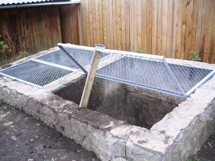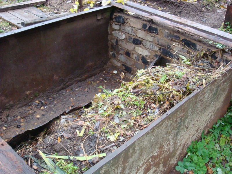 Si vous êtes propriétaire d'une grande parcelle, au lieu d'un bac, il est possible de créer une fosse à compost. De l'intérieur, il doit être recouvert d'ardoise. Assurez-vous de laisser une distance entre les feuilles afin que l'air puisse circuler normalement.