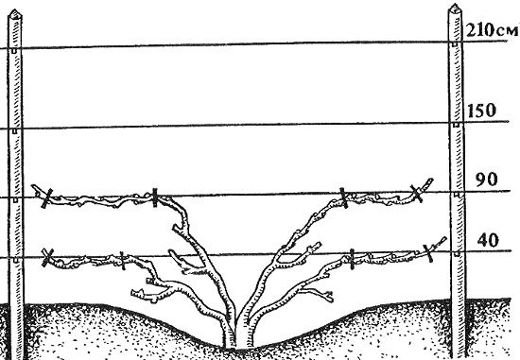 N'oubliez pas la nécessité de réparer la vigne. Les pousses à croissance rapide peuvent tomber sous le poids des grappes. Vous pouvez éviter un tel phénomène désagréable en attachant les vignes à des treillis verticaux et un fil tendu entre eux.